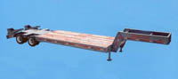 Features: Interlocking main rails and crossmembers, heavy-duty axles and wheels, fixed gooseneck, heavy-duty spring suspension, 50,000lb capacity, 38'1" in overall length, 2" nominal hardwood decking, adjustable 4 position landing legs.